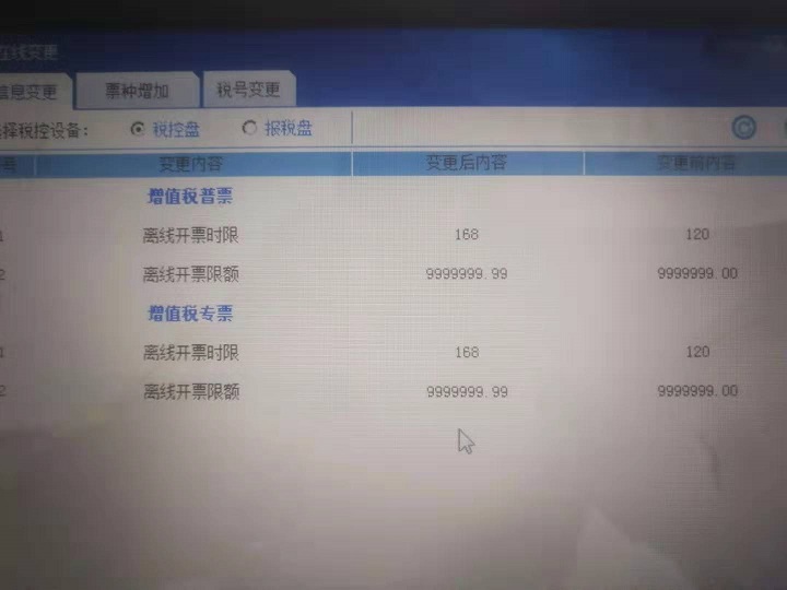 7,關(guān)閉變更頁面,重新登錄軟件檢查,報稅處理-狀態(tài)查詢-監(jiān)控管理信息-離線開票時長168小時。即OK。